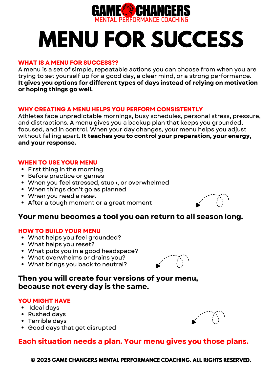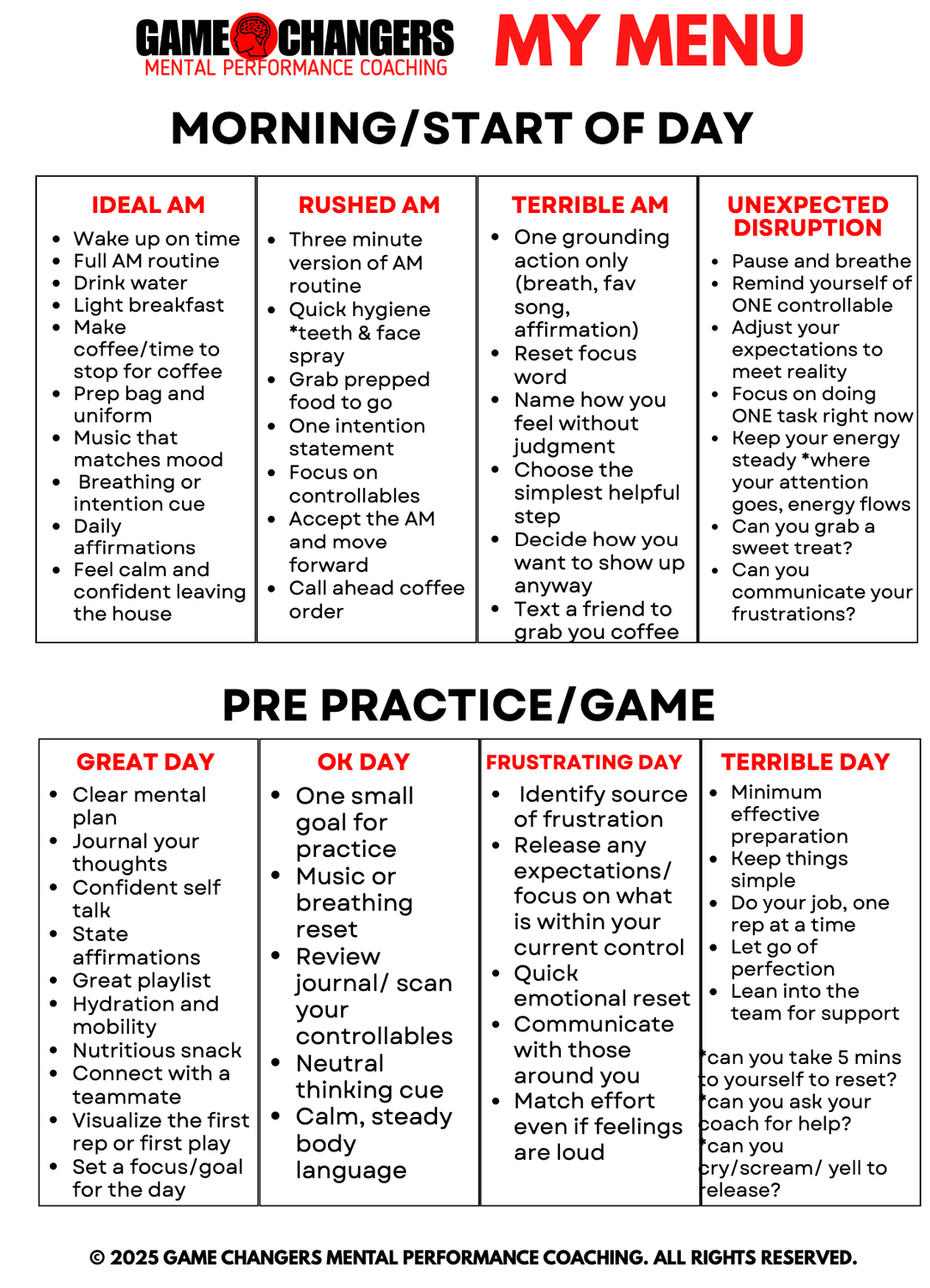 This playbook helps athletes break goals down into controllable actions, habits, and behaviors they can commit to consistently.
